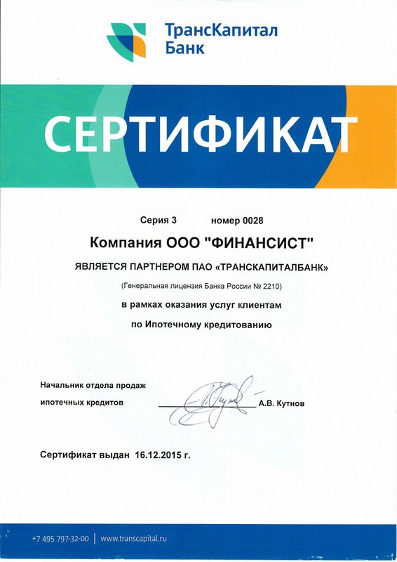 Хочу выразить благодарность компании"Финансист" и в частности ведущему специалисту компании Лукьянчиковой Анне Александровне в действительной помощи получения кредита. Можно с уверенностью сказать, что это работа профессионала.